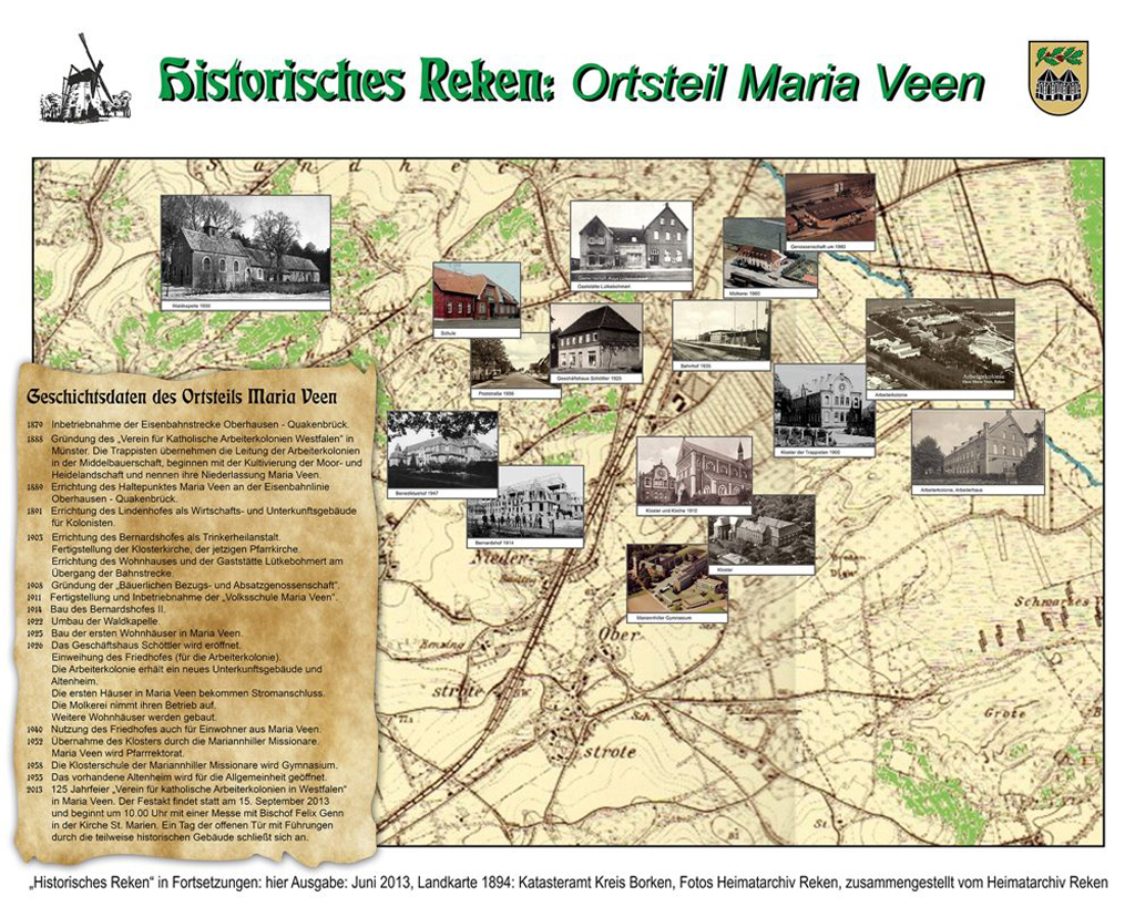 In diesem Jahr 2013 feierte die Arbeiterkolonie in Maria Veen ihr 125-jähriges Bestehen. Für das Heimatarchiv Grund genug, mit einer kleinen Aussstellung im Historischen Sachaukasten auf diese Institution einzugehn.