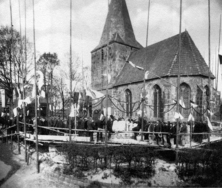 Die größte Glocke im Turm war ein Geschenk von Kaiser Wilhelm I. Sie war aus einem französischen Geschütz gegossen, welches der Kaiser der Gemeinde geschenkt hatte wegen der Tapferkeit eines Klein Rekeners 1871 bei Gravelotte. Der tapfere Mann war ein Sohn der Familie Dersen. Traurige Ironie der Geschichte: lm Ersten Weltkrieg wurde die Glocke wieder demontiert und erneut für die Verwendung in einem Geschütz eingeschmolzen.